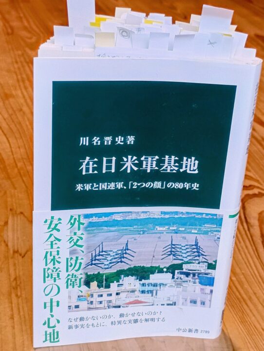本書は、見慣れているはずの風景を地形図か地質図から読み解くのに似ている。日本における基地問題といえば、多くは在日米軍基地であり、もちろん自衛隊基地に焦点が当たることもあるが、それ以外に国連軍の基地(正確には朝鮮国連軍後方基地)が存在することなど、普通は知らず、考えもしない。沖縄をはじめ基地問題に関心を持ち続けたり、身近なところでは隣の種子島(その沖合の馬毛島)で進む日米共用基地建設計画に反対したりする筆者もそうだった。しかし2024年の刊行直後に本書を一読し、日本の基地問題について根底から再考を迫る内容に圧倒された。読書ノートにまとめたいと思いつつ手が回らなかった2年以上のあいだにも、本書の重要性は増すばかりだ。