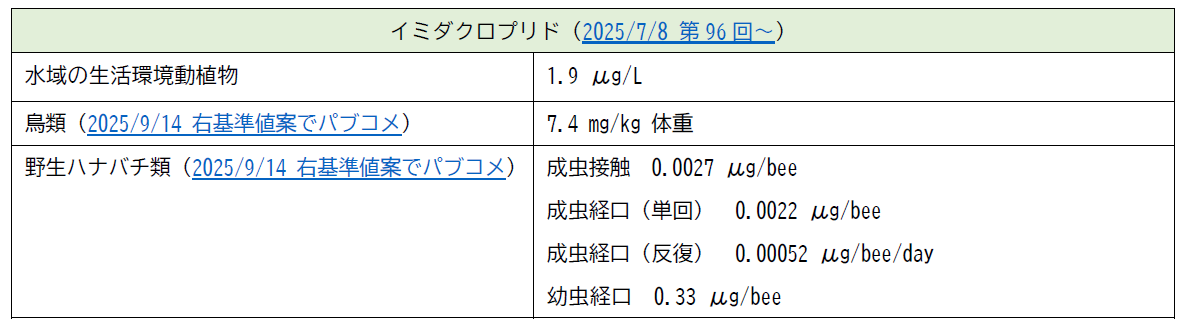※「生活環境動植物の被害防止に係る農薬登録基準値(案)」2025/9/14パブコメ